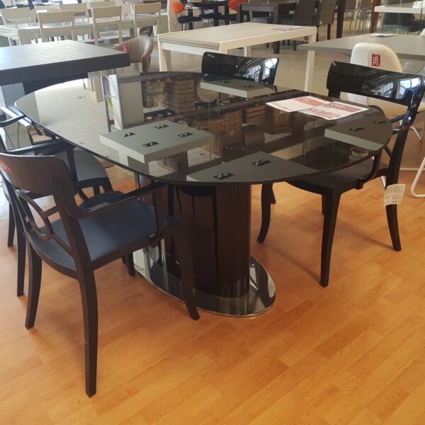 Tavolo Senza Tempo Sruttura finitura wengè e piano vetro temperato colore caffè Misure L130 allungabile 190 P85