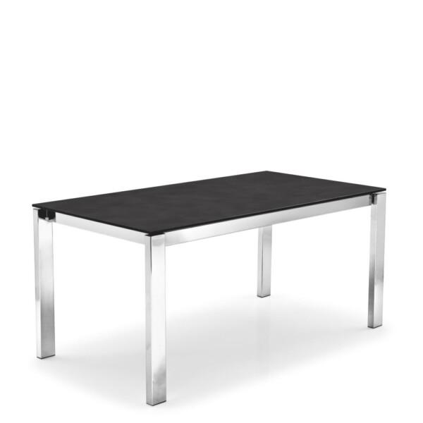 Tavolo odissey allungabile piano in  vetro nero temperato, gambone centrale alluminio e basamento cromato. Misure L.165cm P.104cm (aperto 255cm) Presenta piccoli raschi sul piano.