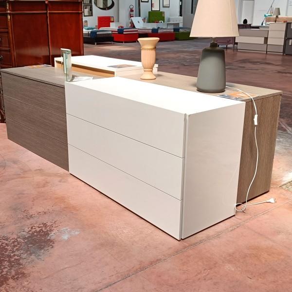 Gruppo Bridge con struttura e frontali laccati bianco e grigio opaco con apertura Push Pull,
