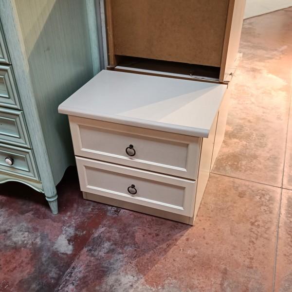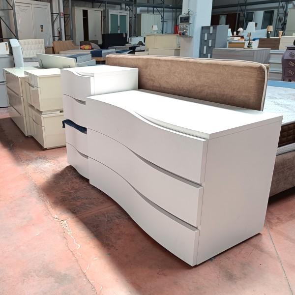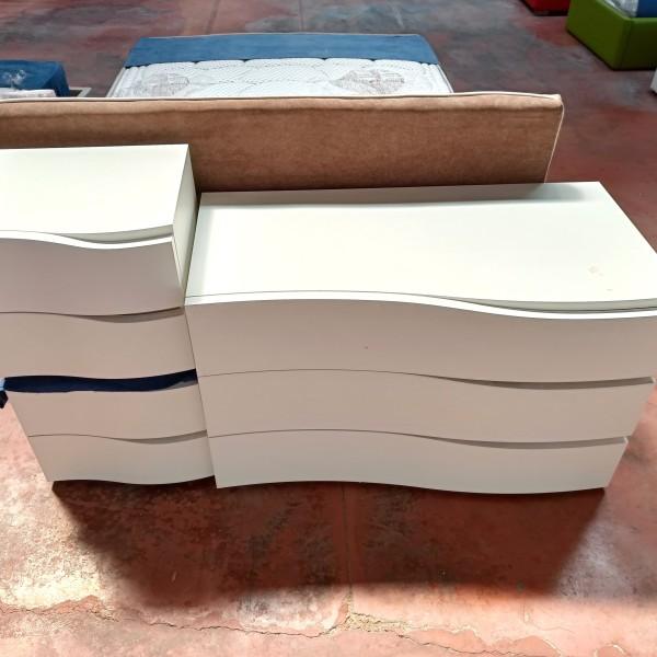 I comodini hanno lo zoccolo rovinato, il primo cassetto di un comodino presenta una ammaccatura sul 1° cassetto.
