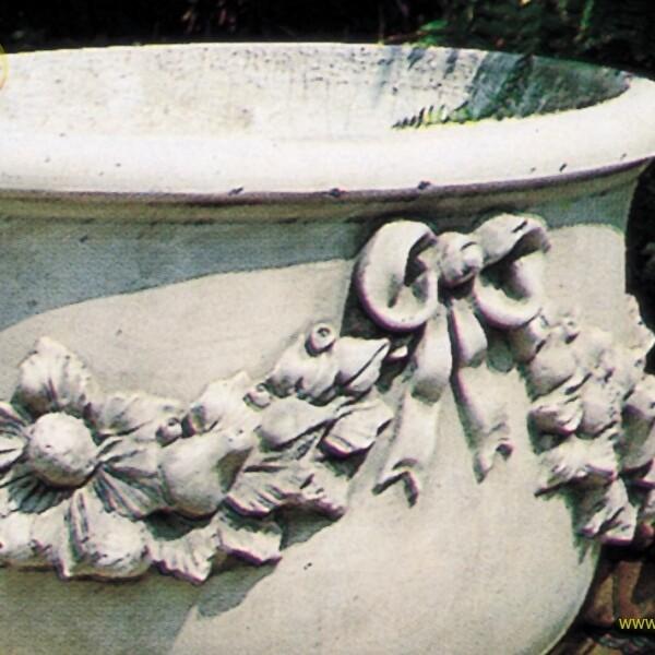 Vaso Ottaviano, realizzato in pietra ricostituita. Dimensioni Ø cm 45 H cm 42 Kg 44 Prodotto in maniera artigianale colando in stampi fatti a mano cemento bianco sapientemente miscelato con preziosi granulati e polveri di marmo di Carrara.