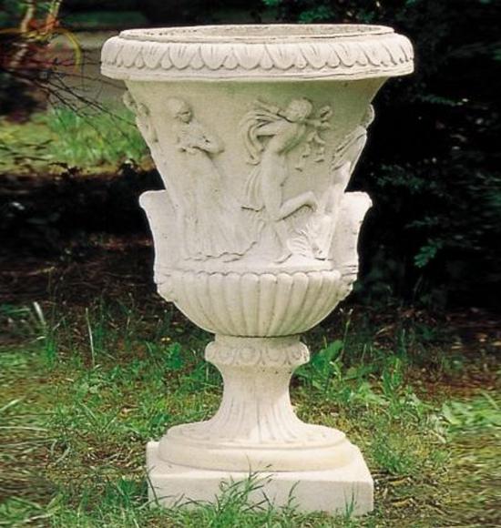Vaso Scipione, realizzato in pietra ricostituita. Dimensioni Ø cm 55 H cm 85 Kg 88 Prodotto in maniera artigianale colando in stampi fatti a mano cemento bianco sapientemente miscelato con preziosi granulati e polveri di marmo di Carrara.