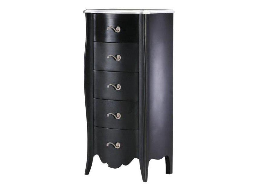 Settimino con 5 cassetti Legno Massello nero con particolari argento.
