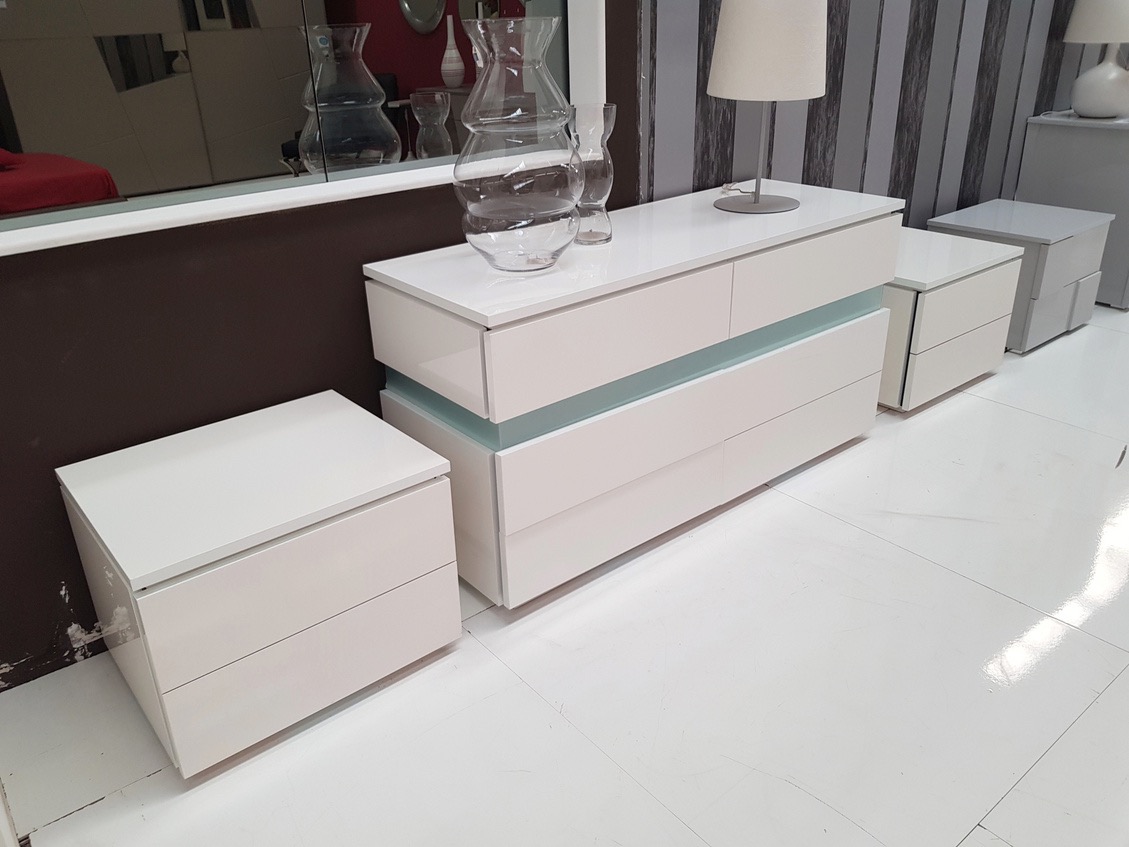 Gruppo Night Collection con struttura e frontali finitura bianco lucido