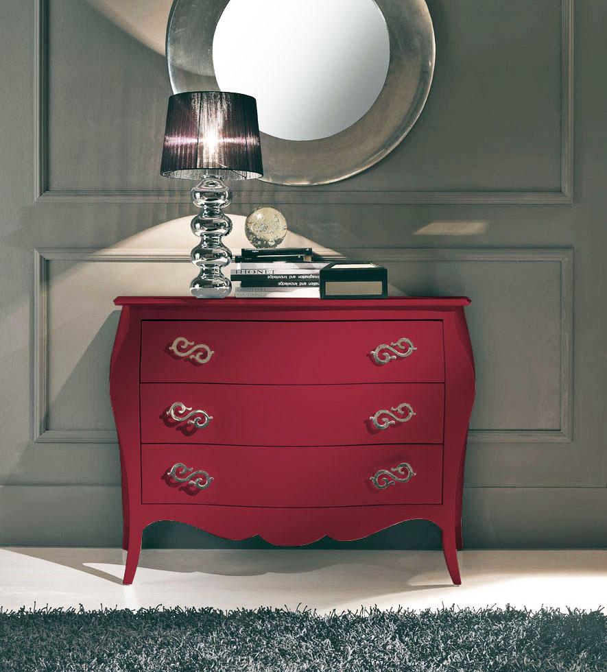 Comò Leonardo con struttura e frontali laccati marsala lucido,