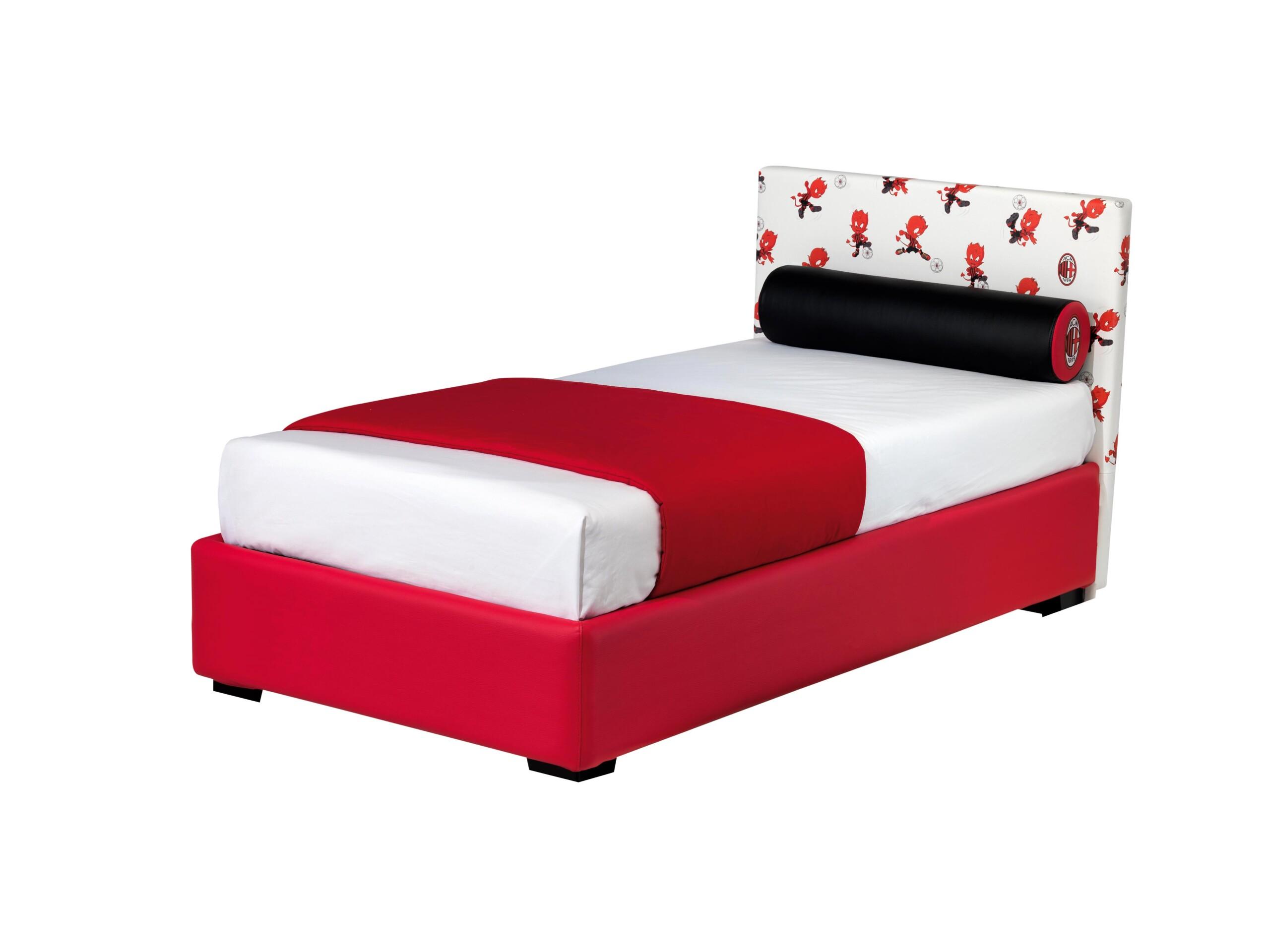 Letto singolo contenitore con logo MILAN . Possibilita’ di acquistare materasso e accessori marchiati MILAN.