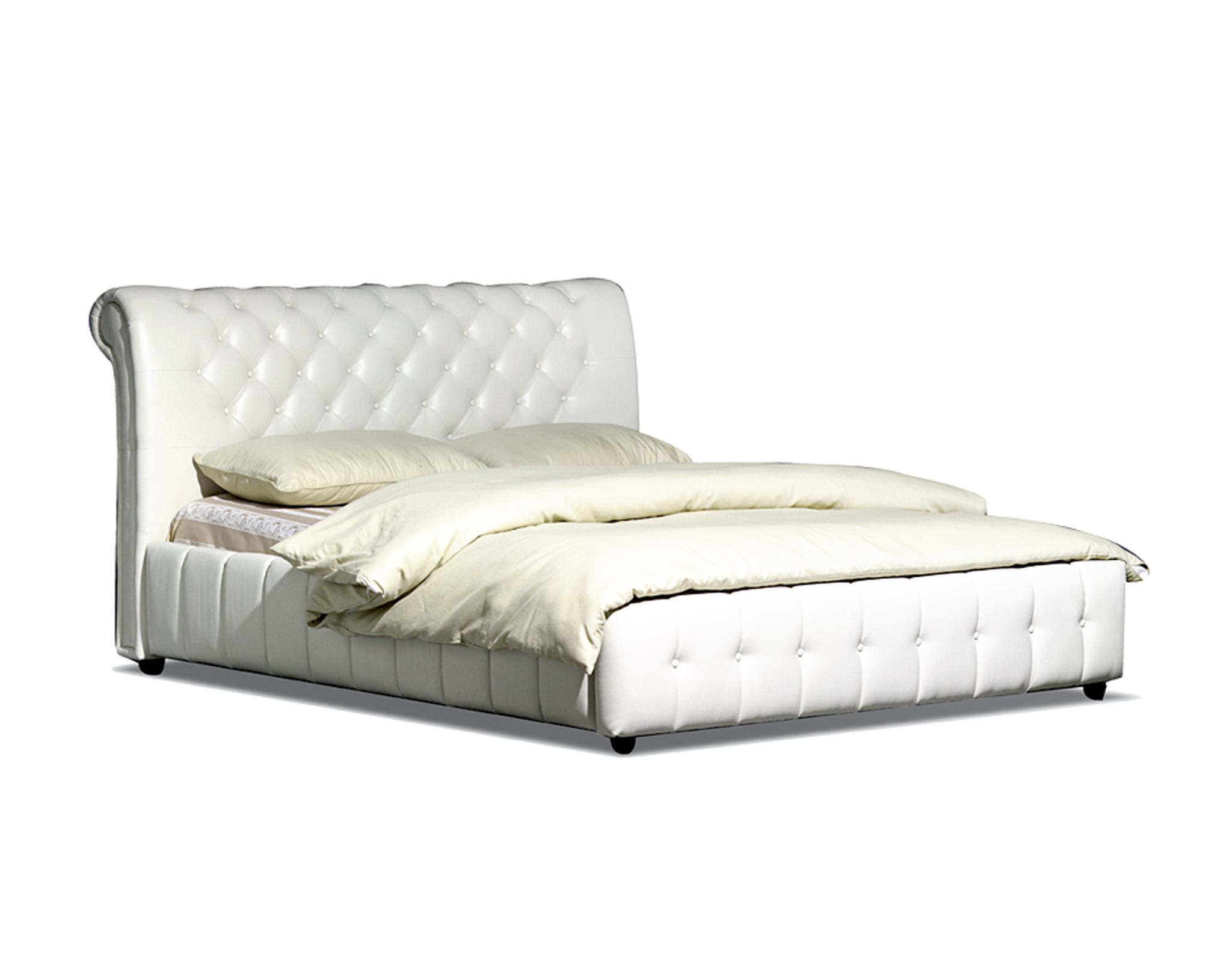 Letto matrimoniale contenitore in ecopelle beige, testata e giroletto capitonne’.