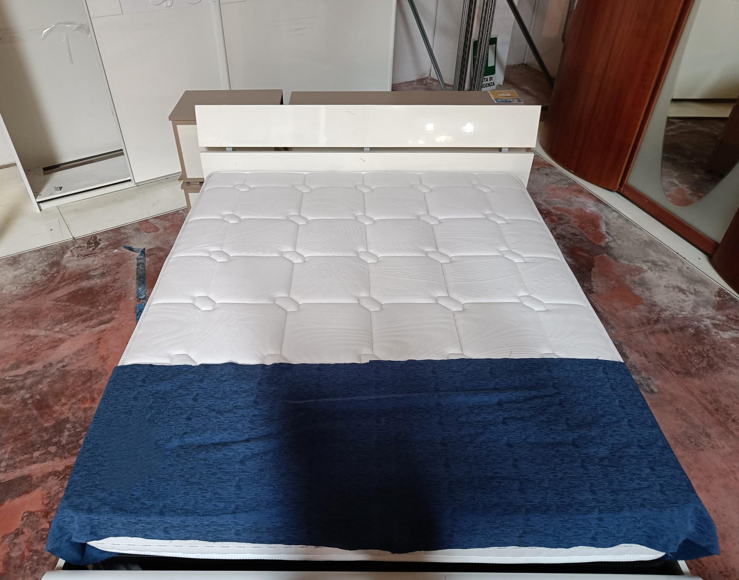 Letto matrimoniale, non contenitore, laccato bianco lucido.