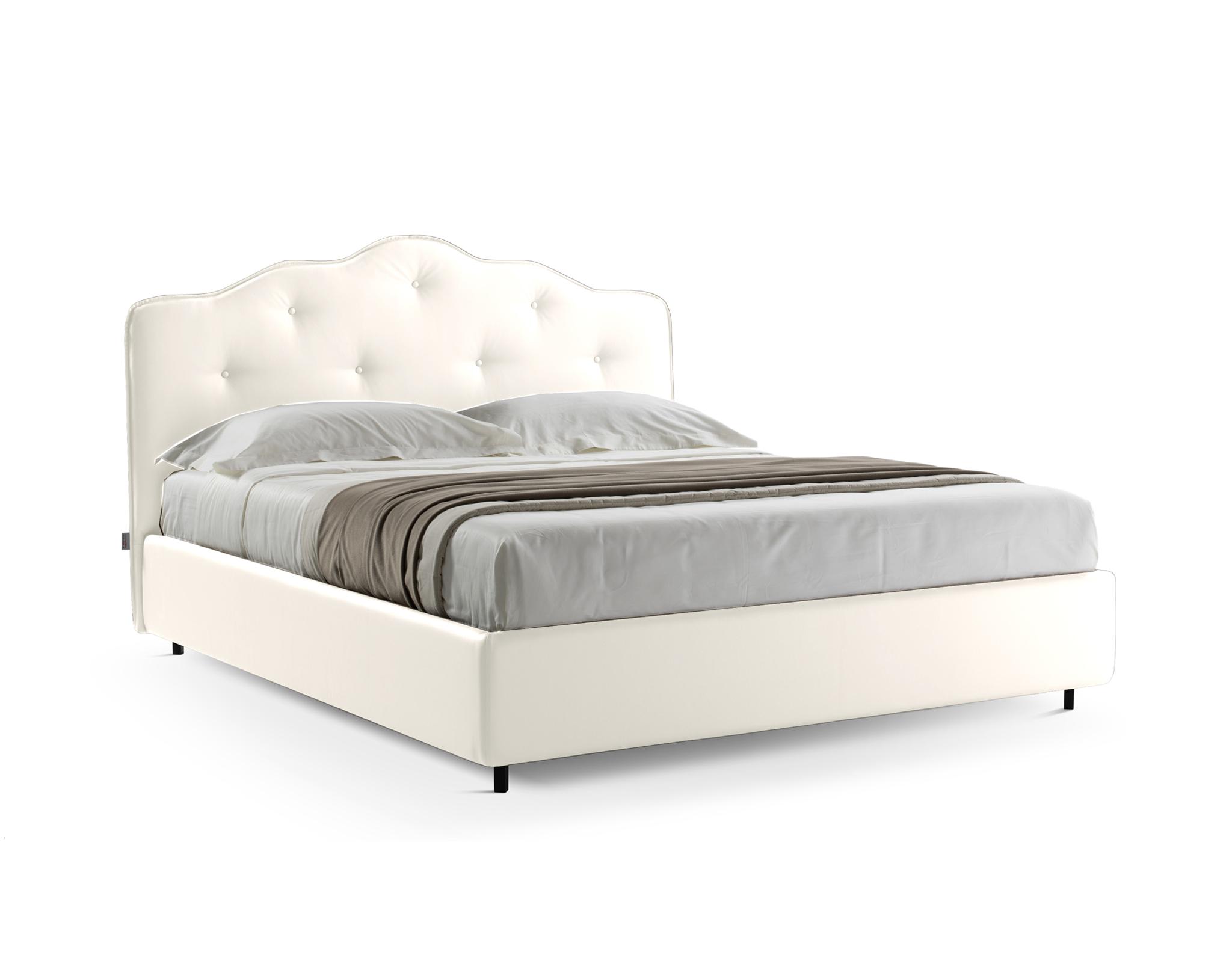 Letto Beatrice imbottito in ecopelle bianca con contenitore.