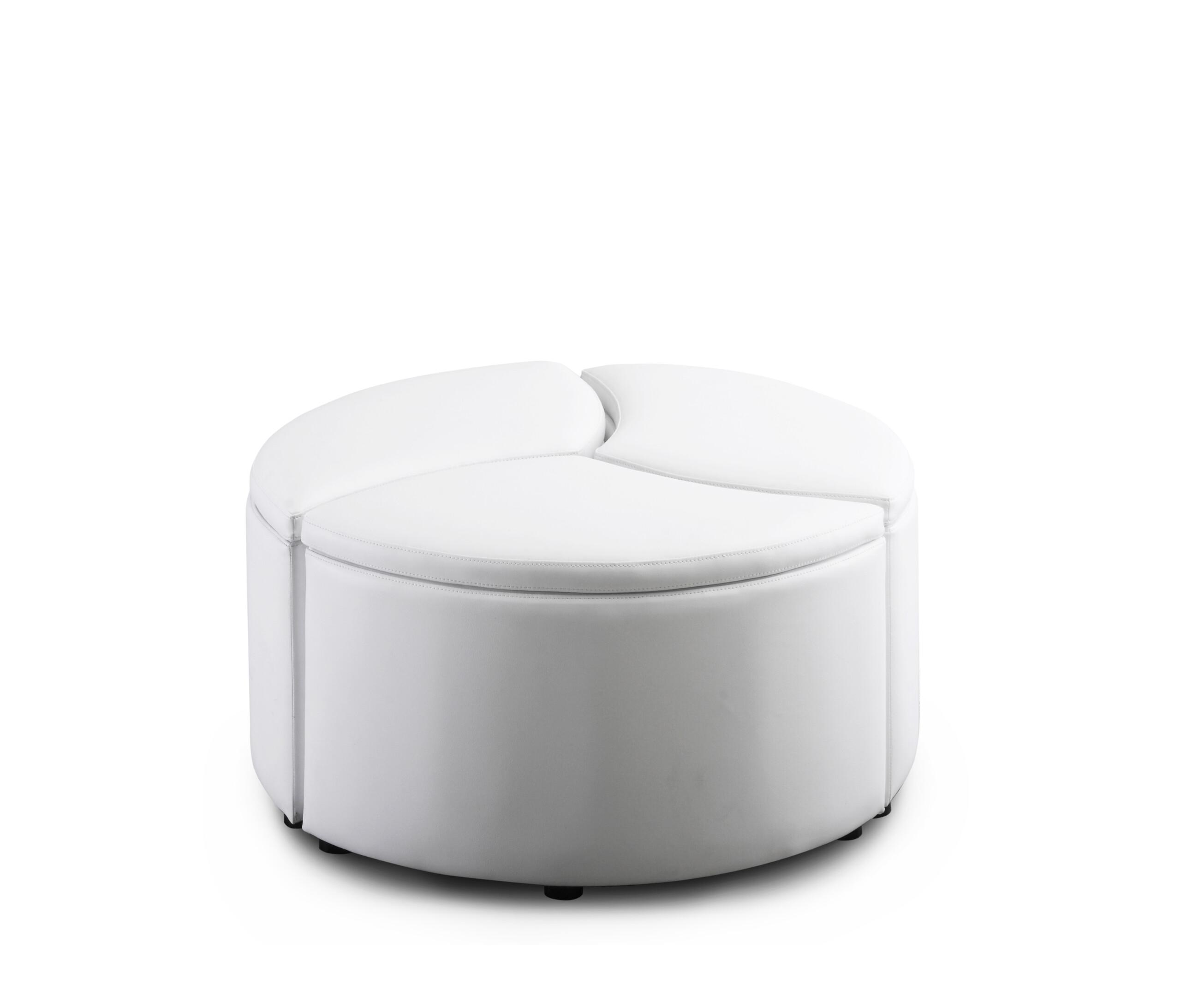 Pouf rotondo che si divide in tre comode sedute con contenitori