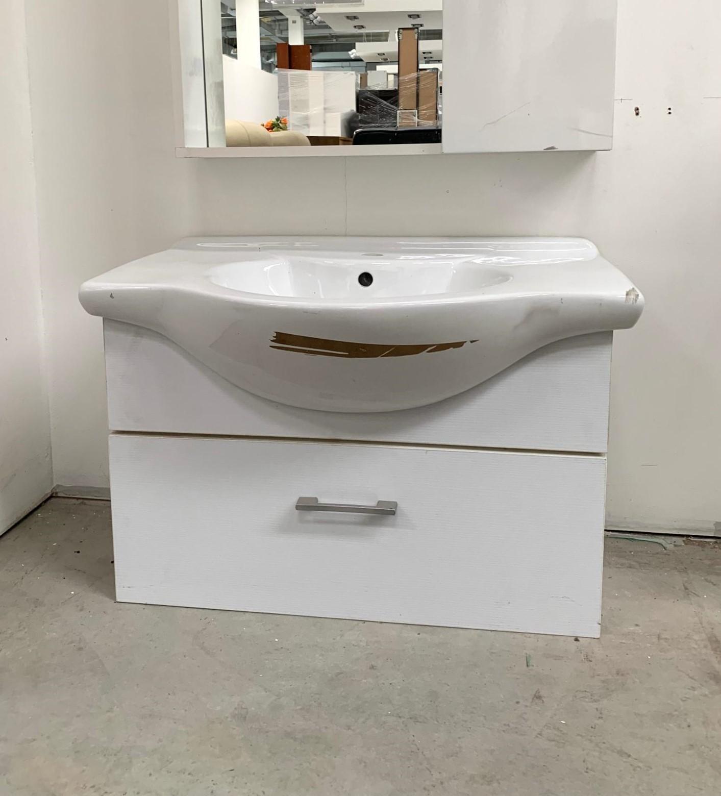 Lavabo con base bianca appeso.