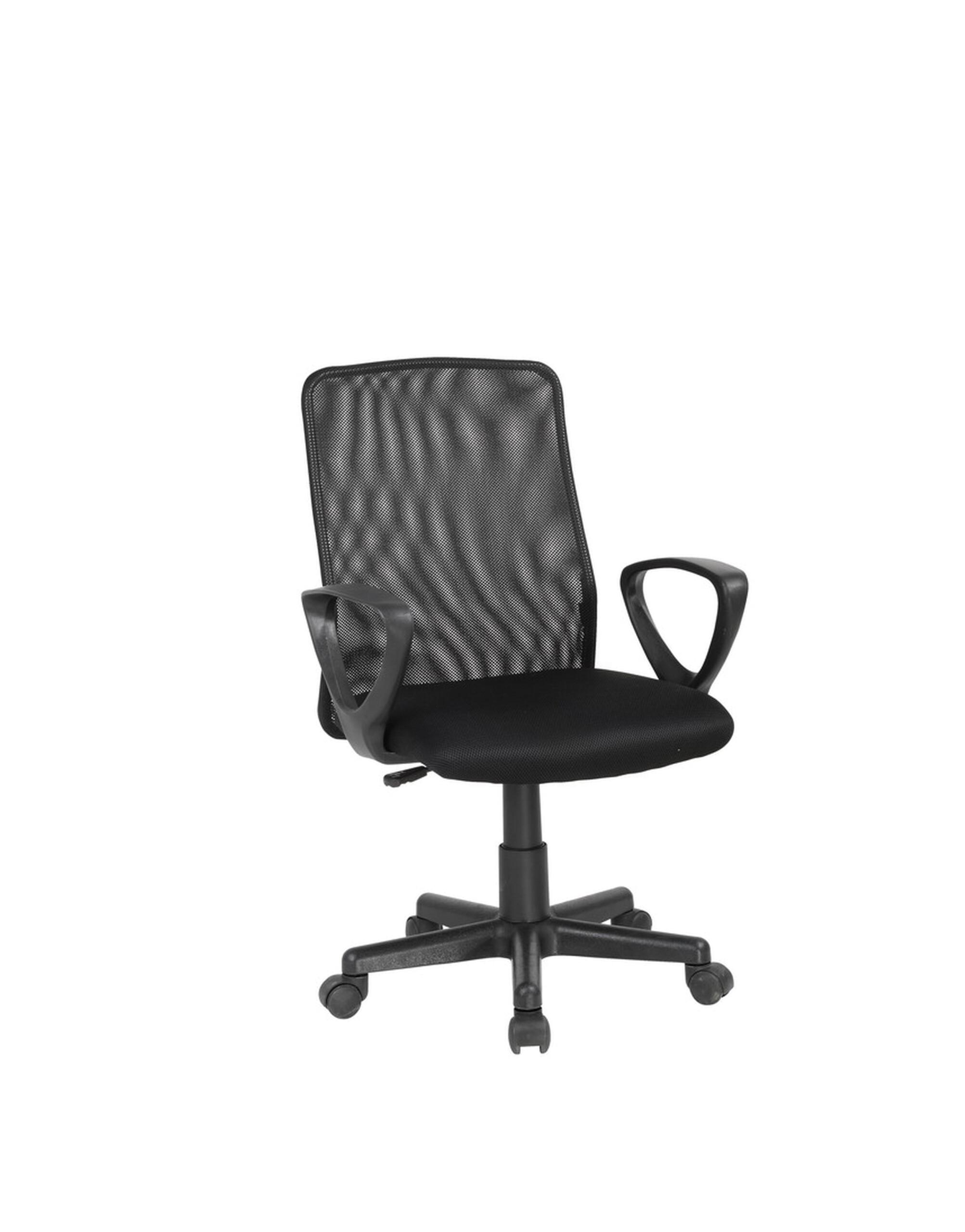Poltrona ufficio con schienale in telato tecnico colore nero e seduta imbottita in tessuto nero.