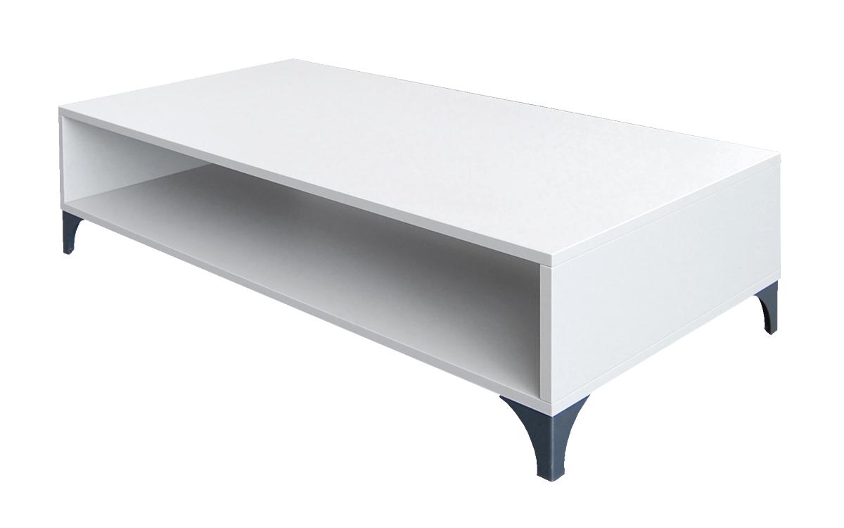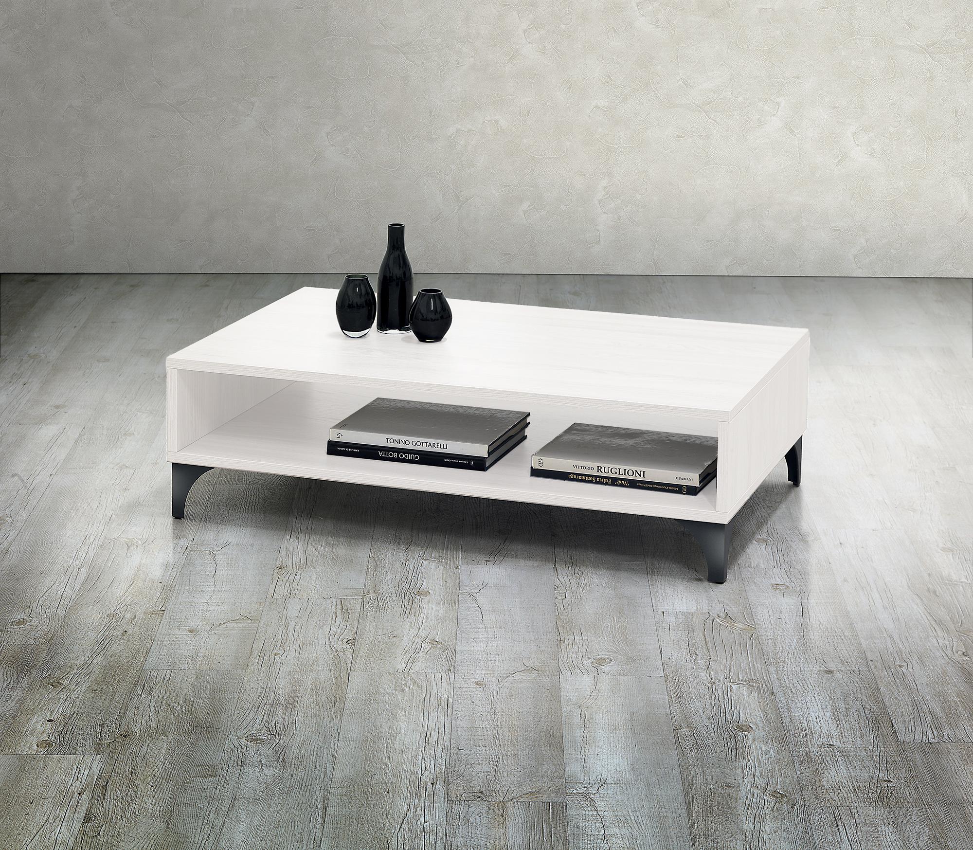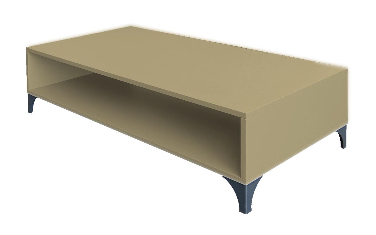 Tavolino rettangolare laccato opaco con piedini in metallo.