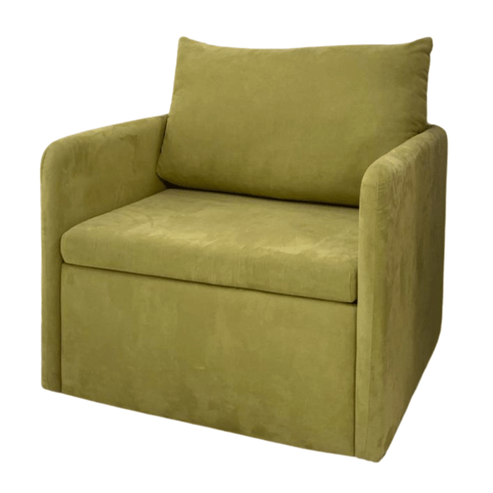 Poltrona letto verde, con rete elettrosaldata.