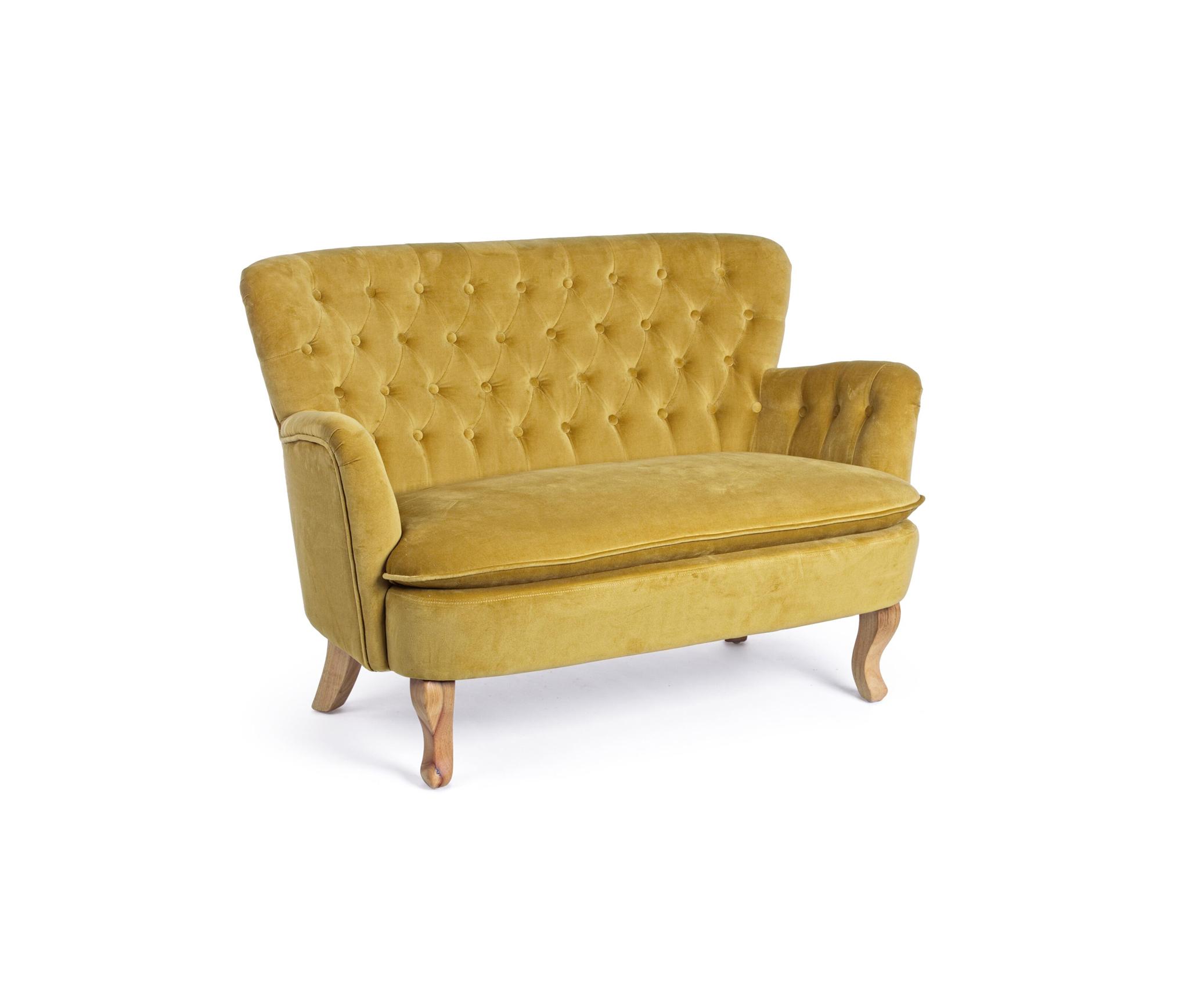 Divanetto Capitonnè rivestito in tessuto velluto colore senape