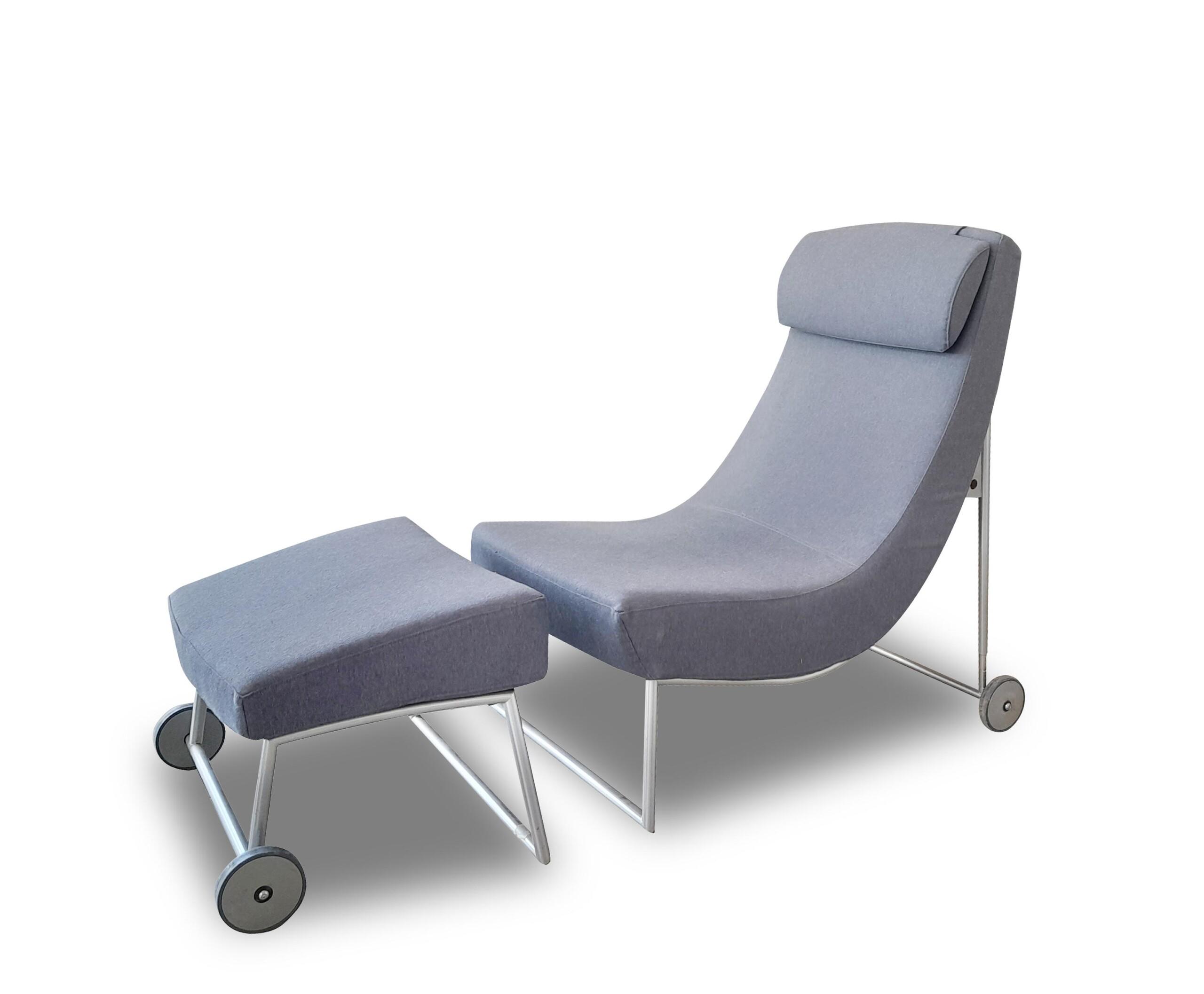 Chaise Longue Dreams con ruote completa di Pouf in tessuto colore grigio.