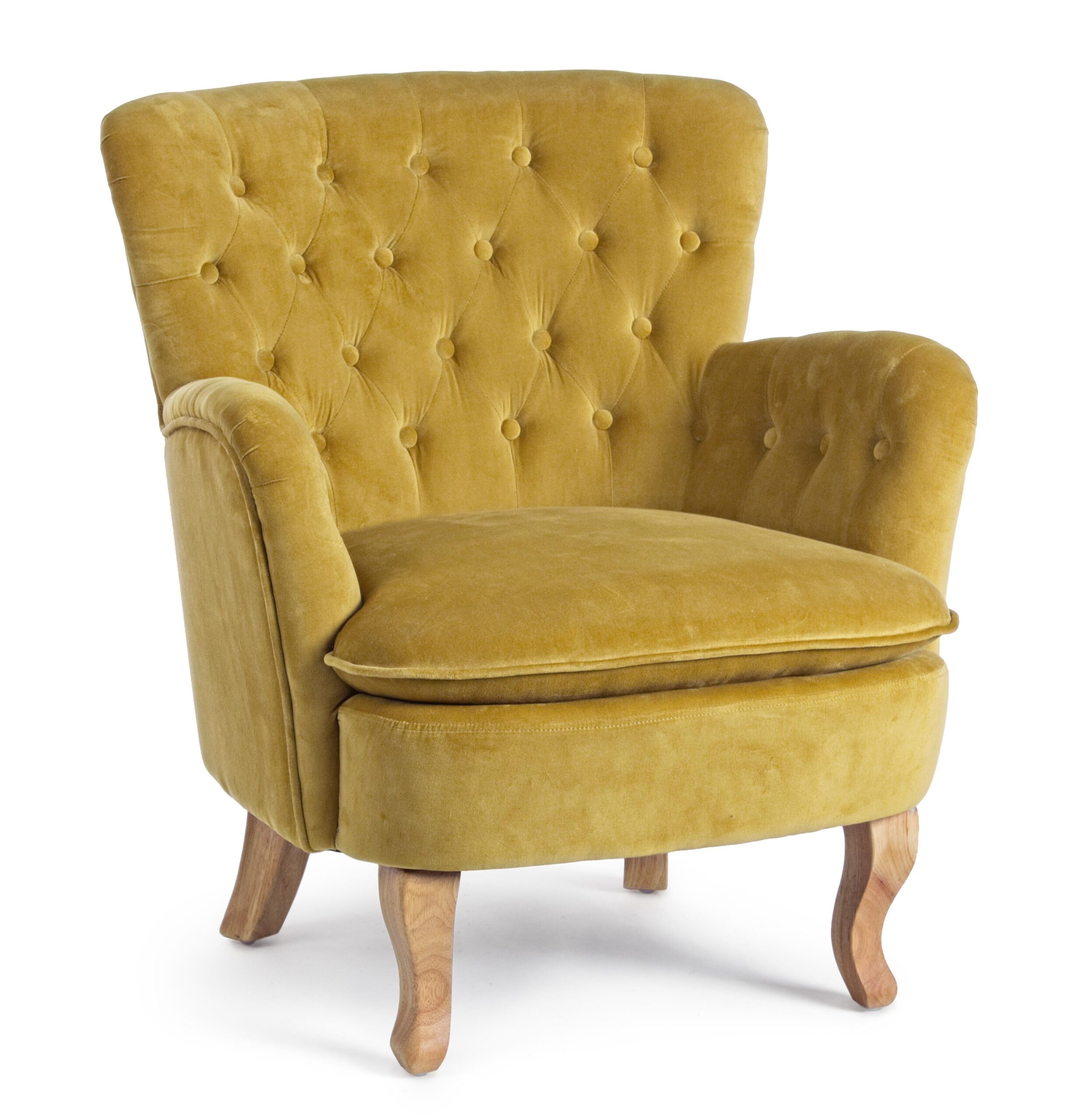 Poltroncina Capitonnè rivestita in tessuto velluto colore senape