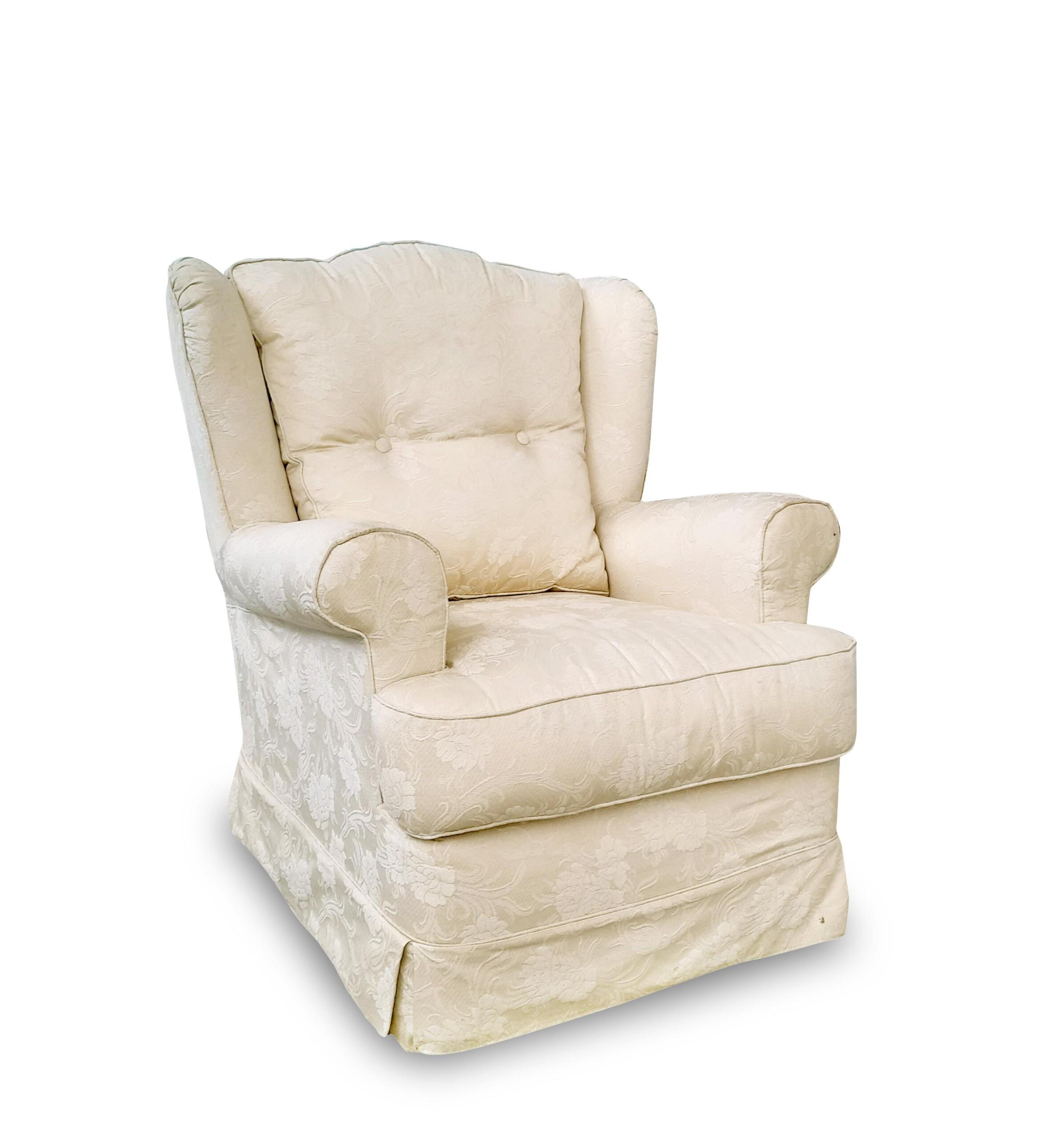 Poltrona Vivaldi rivestita in pregiato tessuto.