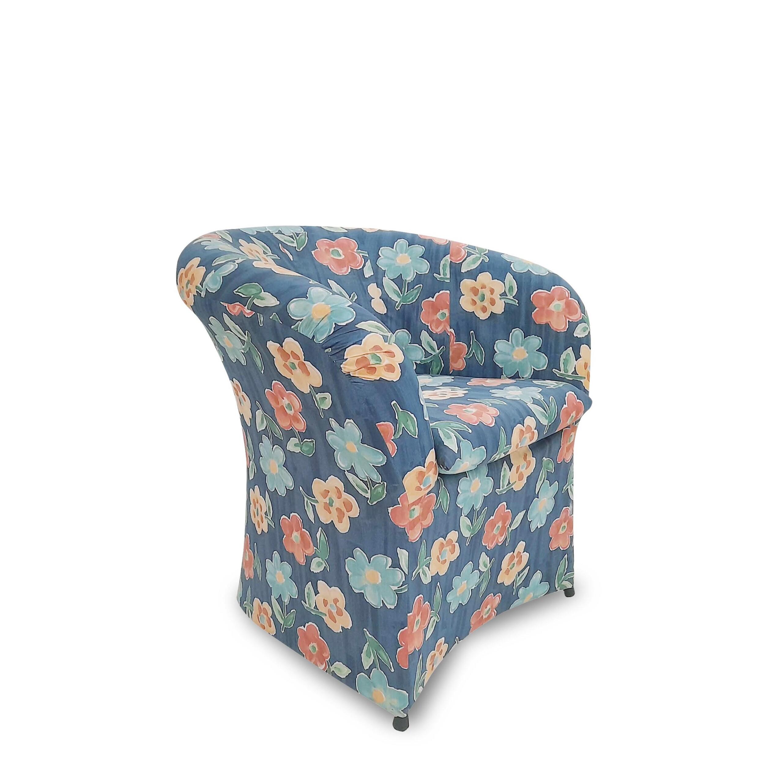Poltrona Monia rivestita in tessuto a fiori.