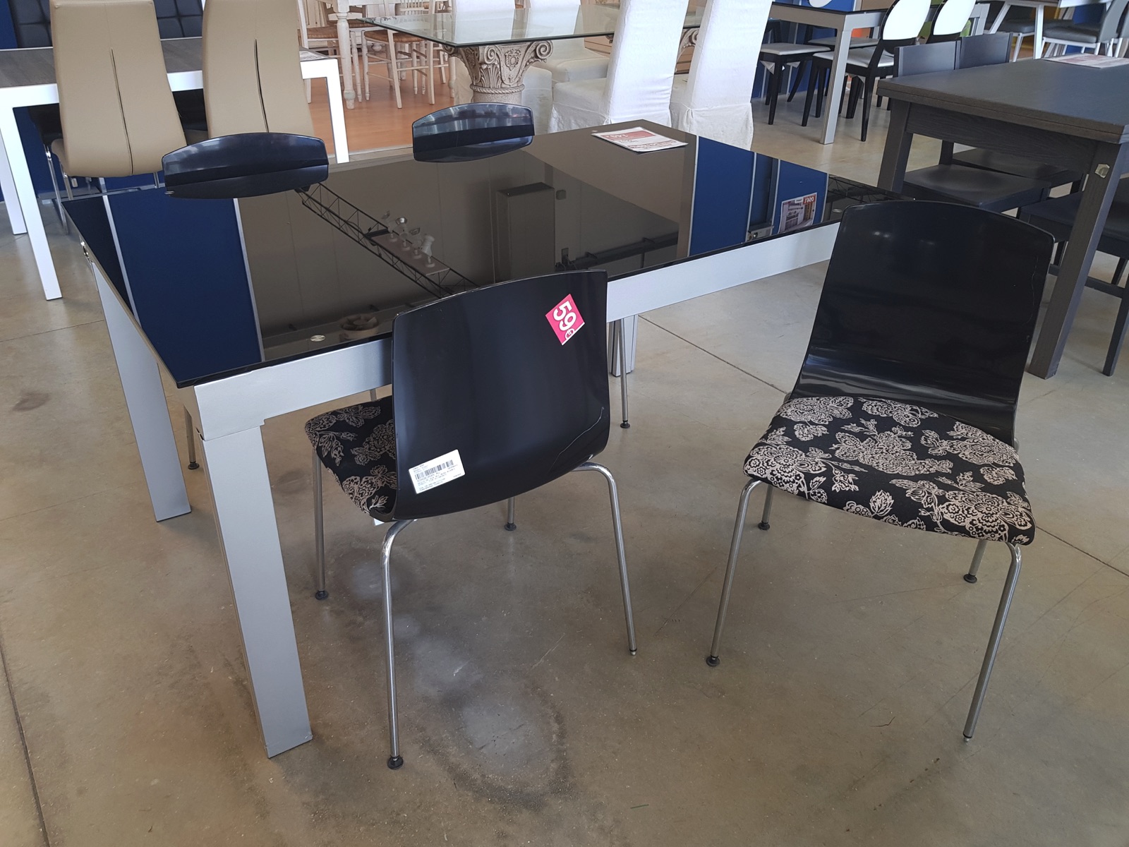 seduta e schienale policarbonato nero lucido seduta imbottita e gambe metallo lucido – graffi in piu’ punti
