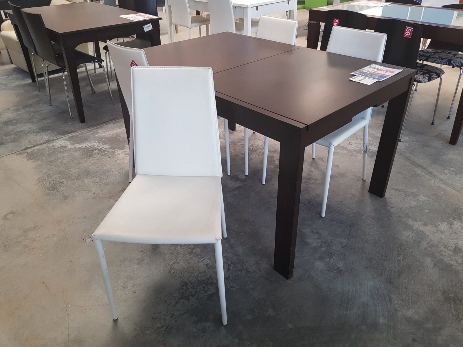 seduta in rigenerato di cuoio bianco,gambe laccate bianco opaco- macchie su sedute e schienali bordi cuciture non perfetti