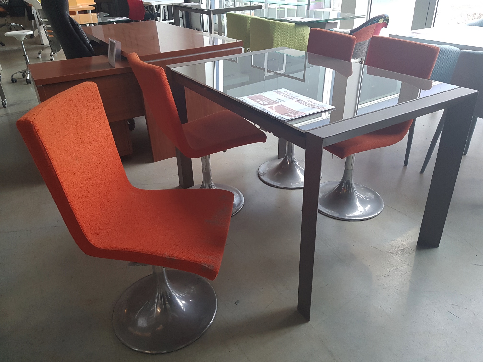 seduta e schienali in tessuto maui arancio basamento in metallo opaco- effetto pilling su tessuto – n.1 sedia con basamento rotto