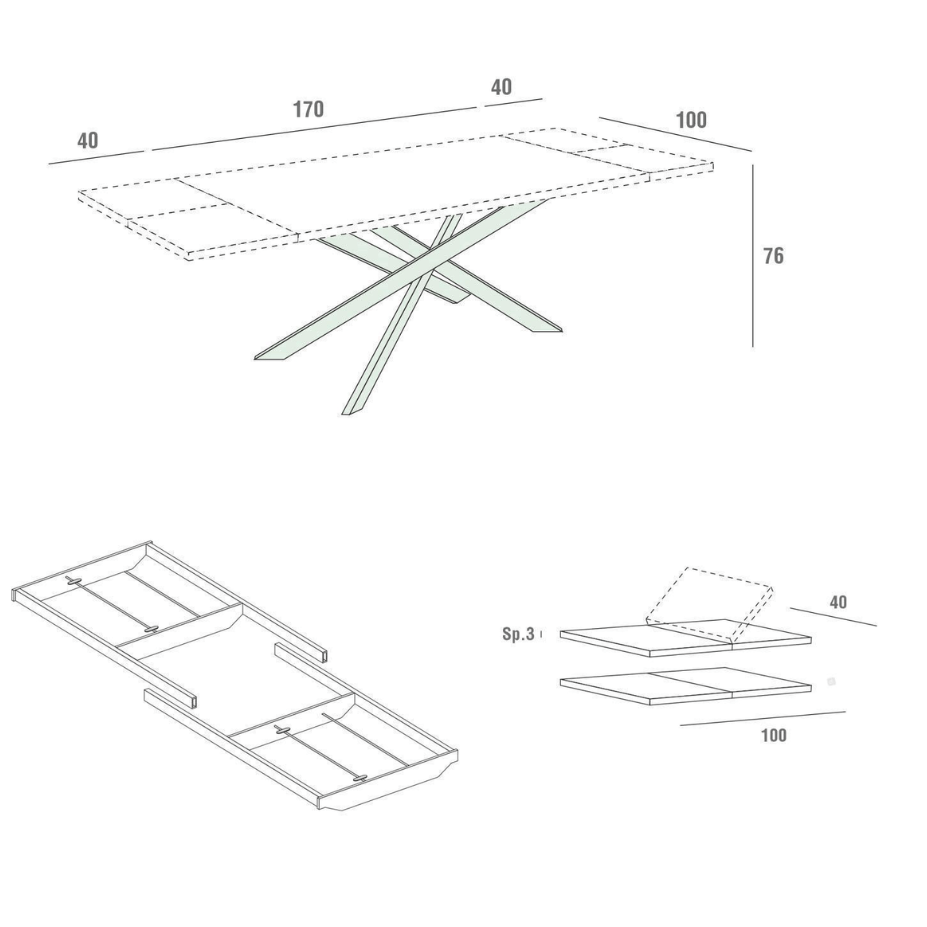 Misure L.170 P.100 H.79 estensibile a 250 cm.