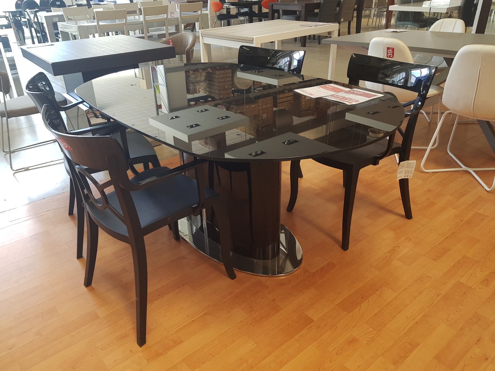 Tavolo odissey allungabile piano in vetro nero temperato,