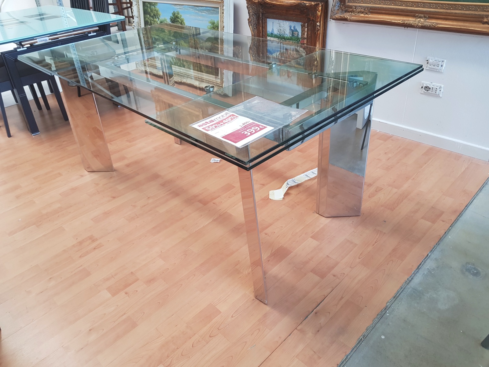 Tavolo con piano in vetro temperato allungabile.2 prolunghe da 50cm