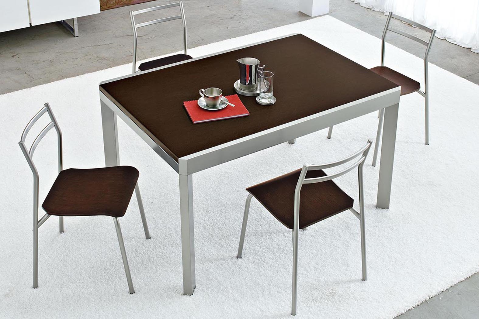Tavolo Elasto. Struttura acciaio e piano finitura wengè