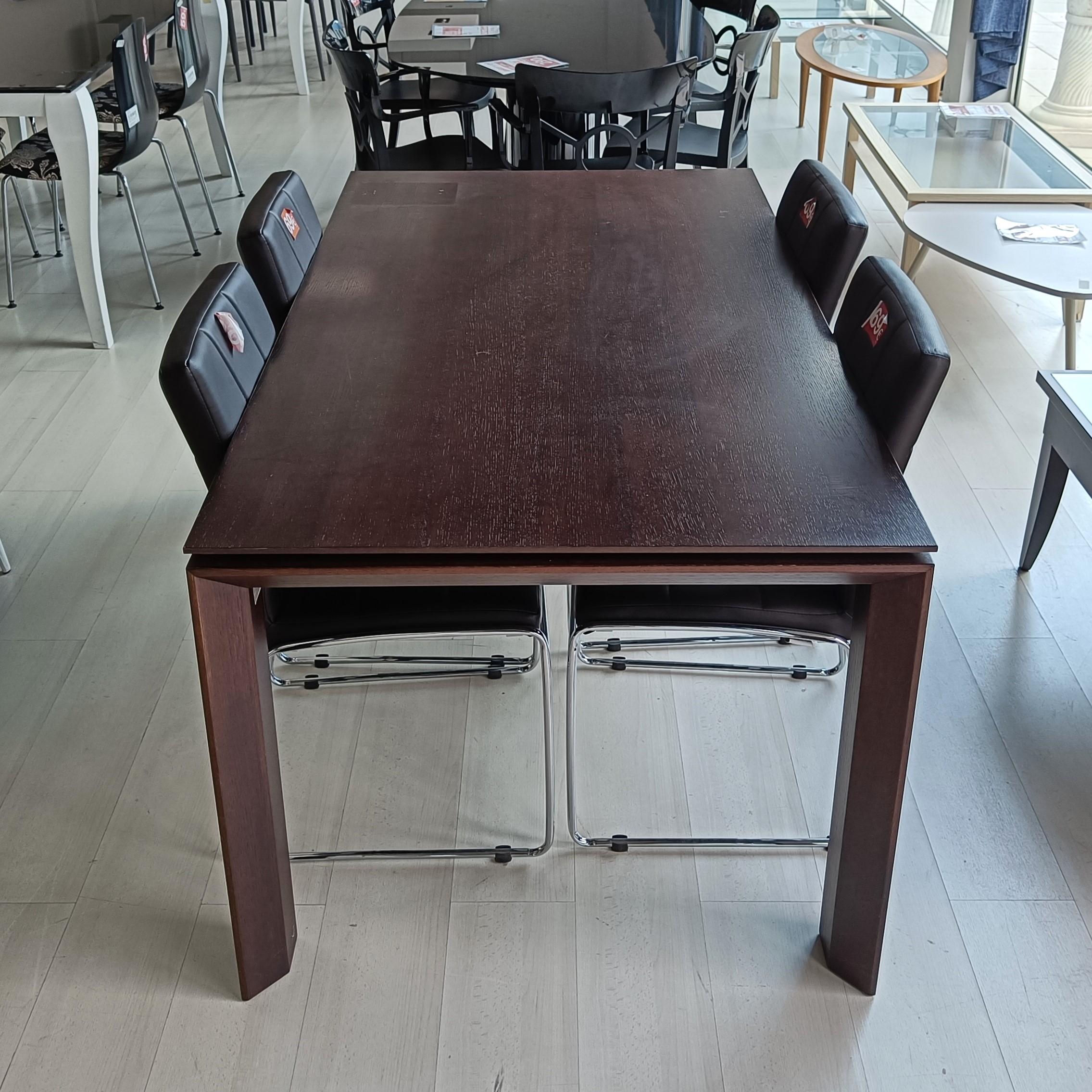 Tavolo modello Omnia, con struttura e piano impiallacciato finitura wengè.