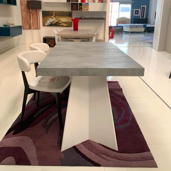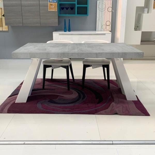 Tavolo modello Olimpia allungabile.Misure: 130x80 estensibile a 210 cm. Struttura e  piano in finitura bianco frassinato. Difetti: Graffi sul piano.